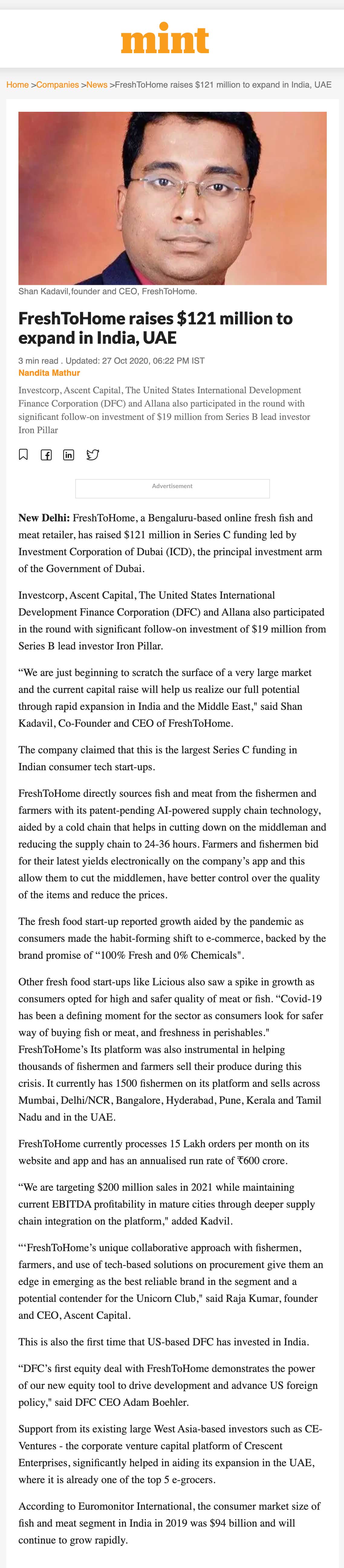 October 28, 2020 By Mahesha News FreshToHome raises $121 million to expand in India, UAE Mahesha October 28, 2020 SOURCE Related