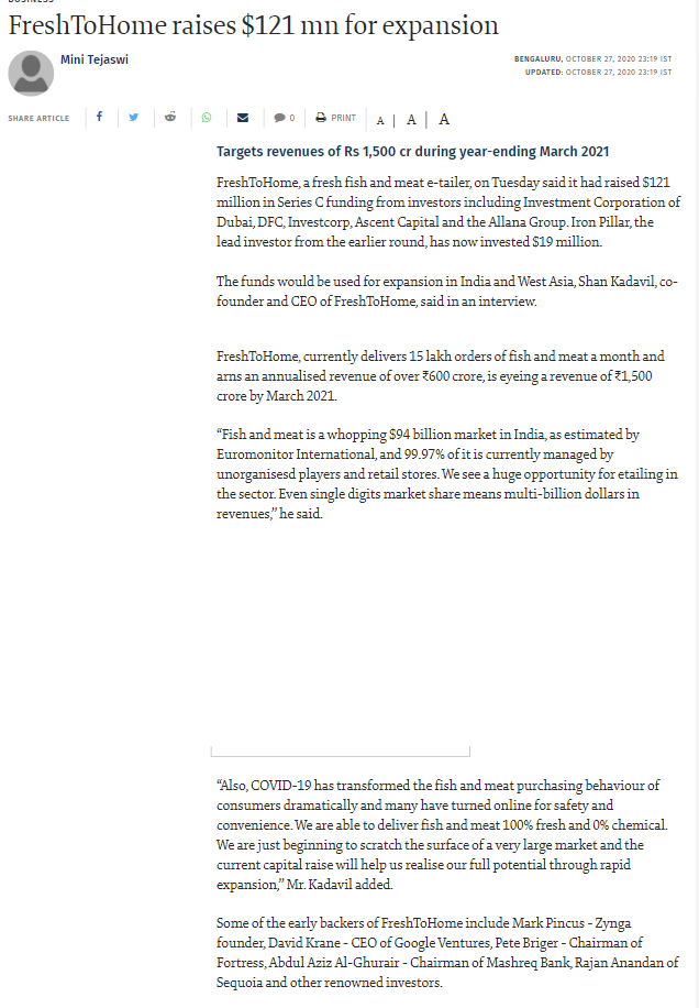 November 13, 2020 By Supriya Ghorpade News FreshToHome raises $121 mn for expansion- The Hindu Supriya Ghorpade November 13, 2020 source Related