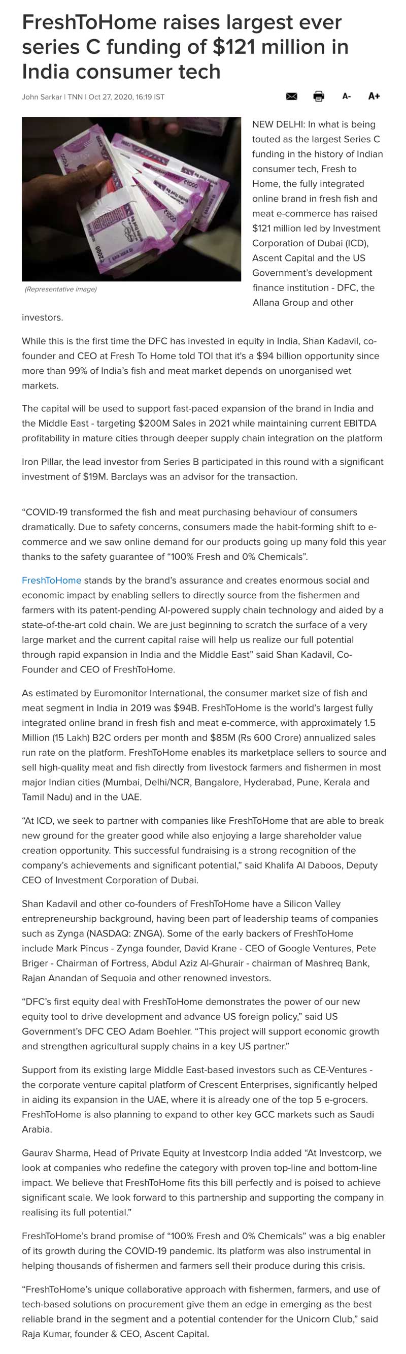 October 28, 2020 By Mahesha News FreshToHome raises largest ever series C funding of $121 million in India consumer tech Mahesha October 28, 2020 SOURCE Related