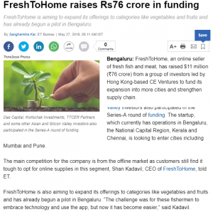 May 29, 2019 By Vaishnavi Ramanujam News FreshToHome raises Rs.76 crore in funding Vaishnavi Ramanujam May 29, 2019 Related chemical freefreshtohomemedianewsseries A