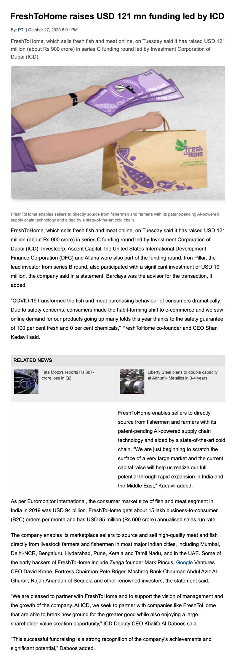 October 28, 2020 By Mahesha News FreshToHome raises USD 121 mn funding led by ICD Mahesha October 28, 2020 SOURCE Related