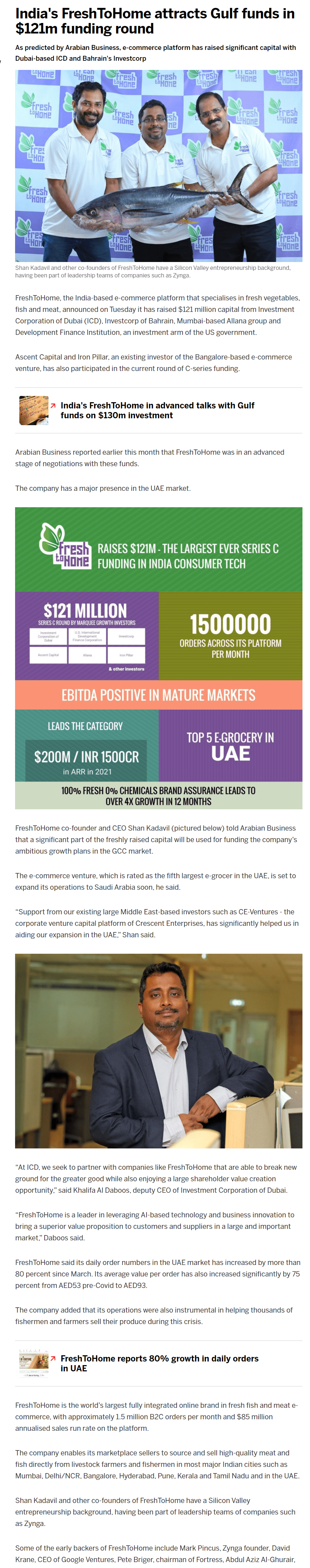 October 28, 2020 By Supriya Ghorpade News India’s FreshToHome attracts Gulf funds in $121m funding round- Arabian Business Supriya Ghorpade October 28, 2020 source Related