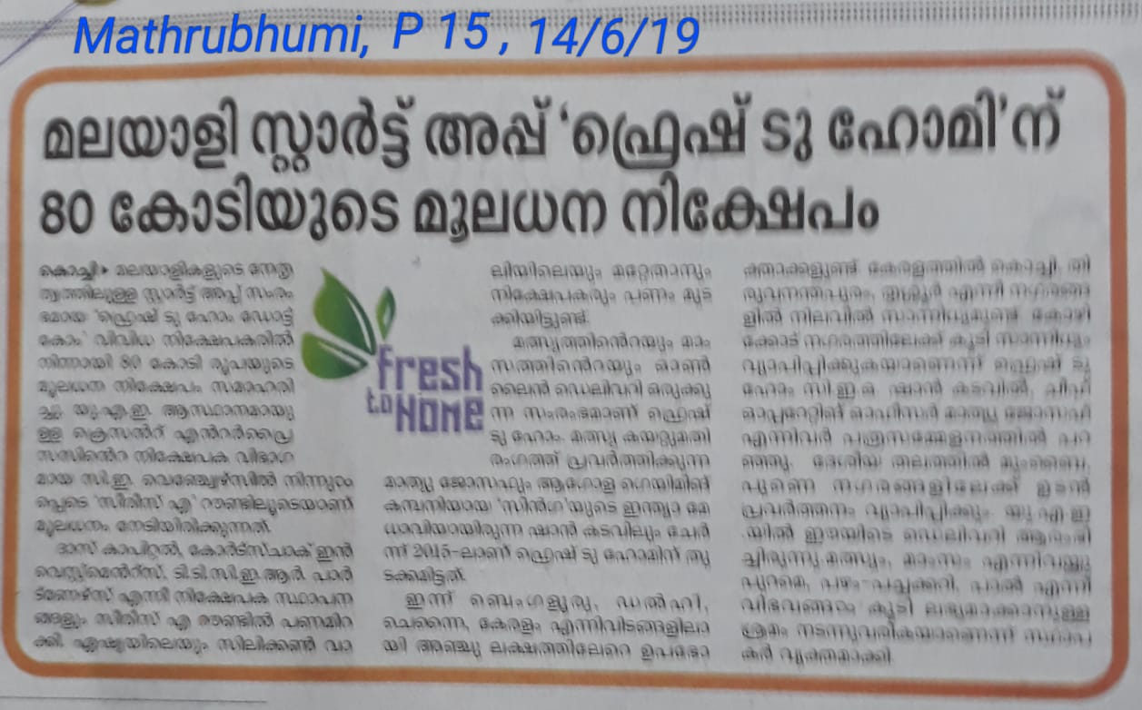 July 8, 2019 By Vaishnavi Ramanujam News Startup FreshToHome receives funding of 80 crores Vaishnavi Ramanujam July 8, 2019 Related chemical freechickenfishlambmeatnewspreservative freestartup